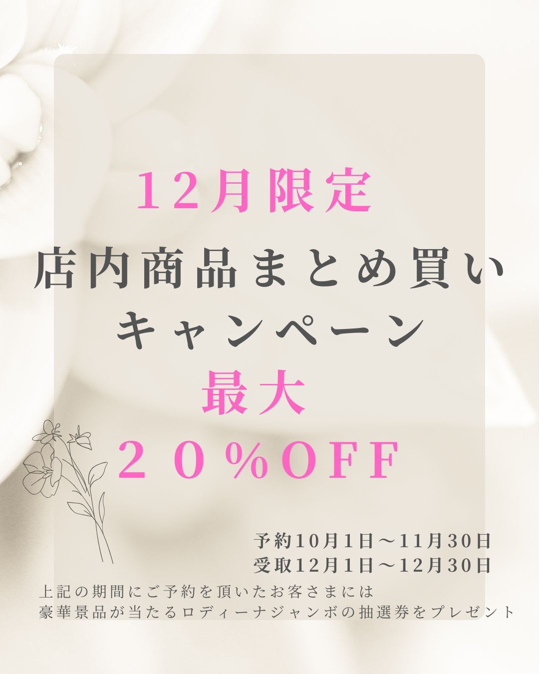 12月に商品のまとめ買いをしていただいたお客さまが対象となります。