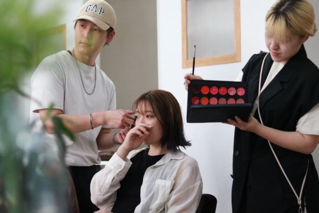 女性スタッフは着付けとまつ毛パーマ、希望者にはまつ毛エクステ